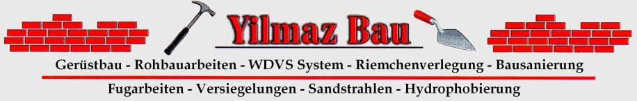 Yilmaz Bau Deniz Yilmaz Jahnstr. 18 41334 Nettetal Kontakt: Telefon: 02153 / 80 02 42 Mobil: 0178 / 175 99 92 Fax: 02157 / 4910 E-Mail: yilmaz_bau@gmx.de